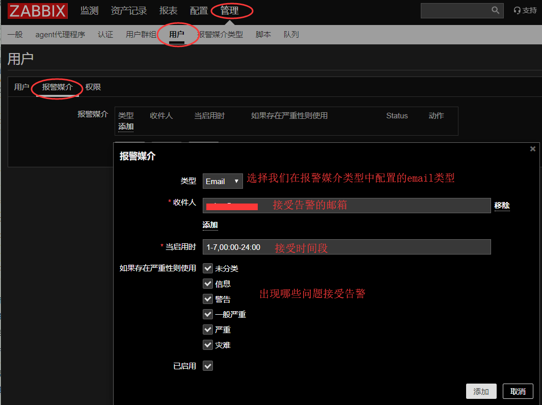 配置用户接受报警通知媒介
