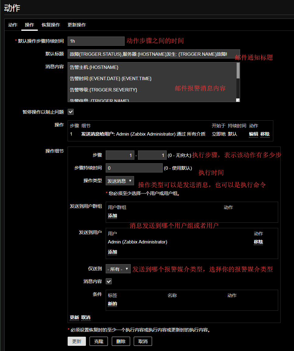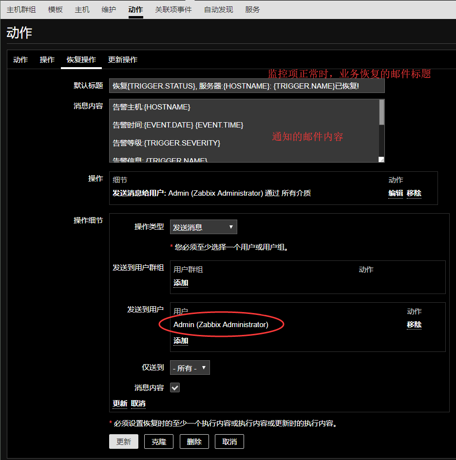默认标题:恢复{TRIGGER.STATUS}, 服务器:{HOSTNAME}: {TRIGGER.NAME}已恢复!