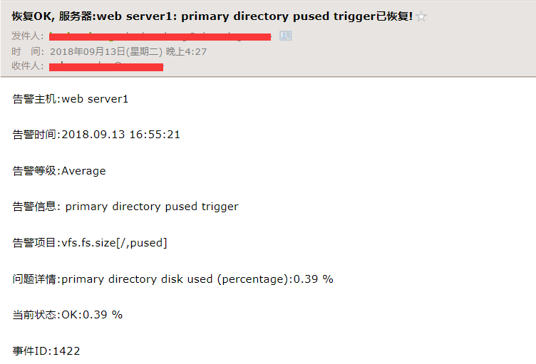 那么很快我们将收到监控项恢复的邮件通知